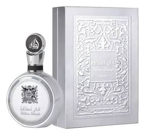 Fakhar Platin de Lattafa Perfumes é um perfume Aromático Fougére Compartilhável. Esta é uma nova fragrância. Fakhar Platin foi lançada em 2025. As notas de topo são: Pimenta Rosa, Bergamota e Cardamomo. As notas de coração são: Goiaba, Lavanda e Gengibre. As notas de fundo são: Incenso, Sândalo e Palo Santo.